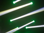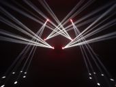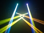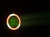 LED moving head beam with hypno ring, color wheel, static gobo wheel, prism and focus