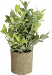 | Setup: | Falls in shape by itself | | Standing/fixation: | Gardening pot covered with artificial earth | | Material: | Plastic | | Color: | Dark green | | Foliage: | Material: plastic | | Decor style: | Mediterranean flair | | Season: | Spring | | Weight: | 1.56 kg |