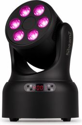 | Product colour | Black | | Light source | 4-in-1 LED | | Colours | Red, Green, Blue, White | | LED power (single LED) | 8W | | Quantity of LEDs | 6 | | Beam angle | 19° | | Field angle | 38° | | Illuminance | 6.658 lx @ 1m | | Head movement: Pan | 540° | | Head movement: Tilt | 270° | | Flash rate per second | 1 - 30Hz | | Modes | Automatic programs, DMX, Master/Slave | | RDM | Yes | | DMX channels | 16 | | DMX connection | 3-pin XLR | | Display | LED | | IP rating | IP20 | | Cooling | Temperature controlled fan | | Power plug | IEC | | Power consumption | 0.582 - 0.258A | | Power supply | 100-240VAC 50/60Hz | | Dimensions (L x W x H) | 170 x 170 x 240mm | | Weight (kg) | 2,50 | | Included accessories | Mounting bracket, Power cable | pdf