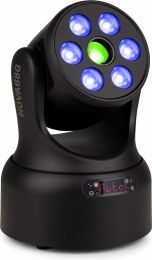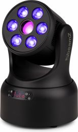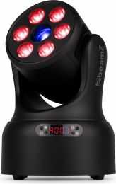 | Product colour | Black | | Light source | Single colour LED, 4-in-1 LED | | Colours | Red, Green, Blue, White | | LED power (single LED) | 8W, 30W | | Quantity of LEDs | 6 + 1 | | Colour wheel | 7 colours + open | | Beam angle | Wash 19° - Gobo 9° | | Field angle | Wash 38° - Gobo 11° | | Illuminance | Wash 6.658 lx @ 1m - Gobo 26.140 lx @ 1m | | Head movement: Pan | 540° | | Head movement: Tilt | 270° | | Static gobo: Quantity | 7 | | Flash rate per second | 1 - 30Hz | | Modes | Automatic programs, DMX, Master/Slave | | RDM | Yes | | DMX channels | 19, 20 | | DMX connection | 3-pin XLR | | Display | LED | | IP rating | IP20 | | Cooling | Temperature controlled fan | | Power plug | IEC | | Power consumption | 0.620 - 0.295A | | Power supply | 100-240VAC 50/60Hz | | Dimensions (L x W x H) | 170 x 170 x 240mm | | Weight (kg) | 2,62 | | Included accessories | Mounting bracket, Power cable | pdf