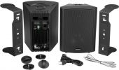 - 2 x mounting bracket, 1 x speaker cable, 1 x power cord, 2 x top, 4 x knurled screw, 1 x user manual