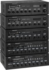 |  | 4-zone-PA mixing amplifier with audio player, IR remote control and Bluetooth, switchable zones, 60 W RMS - 4 PA zone outputs, independently switchable on the front panel