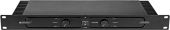 | Power supply: | 230 V AC, 50 Hz | | Power consumption: | 70 W 1/8 power | | Protection class: | Protection class I | | Output power: | 2 x 175 W RMS (4 ohms) 2 x 100 W RMS (8 ohms) 350 W RMS bridged (8 ohms) | | Power connection: | Mains input via IEC connector (M) mounting version power supply cord with safety plug (provided) | | Cable length: | 1 m detachable | | Frequency range: | 20 - 20000 Hz | | S/N ratio: | >105 dB | | THD: | <0.05 % at 1 kHz | | Cooling: | Passive convection cooling | | Impedance: | Input: 20 kOhm , bal. Input: 10 kOhm , unbal. | | Gain: | 38 dB | | Housing color: | Black | | Circuitry: | Class D | | Slew rate: | 20 V/µs | | Damping factor: | >300 | | Control elements: | Power switch, level control per channel, mode switch (stereo/bridged), Input sensitivity switch | | Controls: | Softstart; DC voltage; VHF; current limiting; short-circuit; limiter; overheat | | Status LED: | Power, signal, clip | | Connections: | Input: line via 2 x 3-pin XLR Input: line via 2 x RCA (F) mounting version Output: speaker via 2 x speaker built-in socket (F) Output: speaker via 2 x screw terminal | | Input sensitivity: | 0.775 V; 1.4 V , switchable | | Housing design: | (19") 48.3 cm rack installation 1 U | | Dimensions: | Width: 48.3 cm Depth: 19 cm Height: 4.4 cm | | Weight: | 2.81 kg |     |  |  |  | |