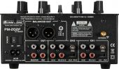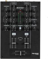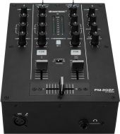 | Power supply: | 100-240 V AC, 50/60 Hz | | Power consumption: | Max. 8 W | | Protection class: | Protection class II | | Power connection: | Mains input via C8 (M) "figure 8" mounting version power supply cord with Euro plug (provided) | | Frequency range: | 20 - 20000 Hz | | S/N ratio: | >80 dB | | THD: | <0.1 % at 1 kHz | | DJ filter: | Per channal: LPF/HPF bipolar, | | Control: | Bluetooth | | Bluetooth device name: | PM-202F | | Range: | Bluetooth: range up to 15m | | Crosstalk: | >60 dB | | Control elements: | Crossfader, Crossfade curve control, crossfade reverse switch, FX Parameter control, power switch | | Status LED: | Power, master level meter | | Connections: | Input: line/phono via 2 x stereo RCA Input: line via 2 x stereo RCA Input: microphone via 1 x 3-pin XLR (F) mounting version Input: antenna via 1 x SMA (F) mounting version Input: Earthing connection via 2 x screw terminal Output: master via 2 x 3-pin XLR (M) mounting version Output: master via 1 x stereo RCA Output: rec. via 1 x stereo RCA Output: headphones via 1 x 6.3 mm jack socket (stereo) mounting version Output: headphones via 1 x 3.5 mm jack (stereo) mounting version | | Channels: | Input chanel: 2 x stereo with Line-Line/Phono-Bluetooth switch via RCA, channel control via 60mm fader, 2-band tone control EQ, gain control, CUE switch Microphon chanal: 1 x mono via XLR, channel control via rotary dial, 2-band tone control EQ Master output: 1 x stereo via XLR or RCA, channel control via rotary dial, balancecontrol Headphones output: stereo via jack, channel control via rotary dial, cue mix function Rec. output: stereo via RCA | | Material: | Metal | | Color: | Black | | Housing design: | Desktop console housing | | Dimensions: | Length: 30.5 cm Width: 19.0 cm Height: 11.0 cm | | Weight: | 2.18 kg | | Power cord | | | Cable length: | 2.10 m detachable |