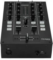 | Power supply: | 100-240 V AC, 50/60 Hz | | Power consumption: | Max. 8 W | | Protection class: | Protection class II | | Power connection: | Mains input via C8 (M) "figure 8" mounting version power supply cord with Euro plug (provided) | | Frequency range: | 20 - 20000 Hz | | S/N ratio: | >80 dB | | THD: | <0.1 % at 1 kHz | | DJ filter: | Per channal: LPF/HPF bipolar, | | DJ-FX: | Master: CHORUS, REVERB, DELAY, FLANGER Master: WHA, PHASE, | | Control: | Bluetooth | | Bluetooth device name: | PM-202FX | | Range: | Bluetooth: range up to 15m | | Crosstalk: | >60 dB | | Control elements: | Crossfader, Crossfade curve control, crossfade reverse switch, FX Parameter control, power switch | | Status LED: | Power, master level meter | | Connections: | Input: line/phono via 2 x stereo RCA Input: line via 2 x stereo RCA Input: microphone via 1 x 3-pin XLR (F) mounting version Input: antenna via 1 x SMA (F) mounting version Input: Earthing connection via 2 x screw terminal Output: master via 2 x 3-pin XLR (M) mounting version Output: master via 1 x stereo RCA Output: rec. via 1 x stereo RCA Output: headphones via 1 x 6.3 mm jack socket (stereo) mounting version Output: headphones via 1 x 3.5 mm jack (stereo) mounting version | | Channels: | Input chanel: 2 x stereo with Line-Line/Phono-Bluetooth switch via RCA, channel control via 60mm fader, 2-band tone control EQ, gain control, CUE switch Microphon chanal: 1 x mono via XLR, channel control via rotary dial, 2-band tone control EQ Master output: 1 x stereo via XLR or RCA, channel control via rotary dial, balancecontrol Headphones output: stereo via jack, channel control via rotary dial, cue mix function Rec. output: stereo via RCA | | Material: | Metal | | Color: | Black | | Housing design: | Desktop console housing | | Dimensions: | Length: 30.5 cm Width: 19.0 cm Height: 11.0 cm | | Weight: | 2.18 kg | | Power cord | | | Cable length: | 2.10 m detachable |