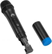 | Type: | Hand-held transmitter | | Capsule type: | Dynamic | | Polar pattern: | Cardioid | | Battery: | 2 x Mignon (AA) (not included) | | Range: | Range up to 60m | | Carrier frequency: | 863 MHz | | RF power output: | 10 mW | | Frequency selection: | Fixed frequencies | | Switch: | On/off switch | | Material: | Plastic | | Color: | Black | | Dimensions: | Length: 24 cm Diameter: Ø 4.6 cm | | Weight: | 0.17 kg |  |  |  |  | |