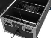 |  | Trunk case with castors | Power supply: | 100-240 V AC, 50/60 Hz | | Power connection: | Mains input via IP T-Con (M) mounting version power supply cord with safety plug (provided) | | Cable length: | 1.2 m | | Device fuse: | 5 x 20 mm, F 5 A fuse replaceable | | Aluminum profile frames: | 35 mm | | Case handle: | 4 pc/pcs | | Edge mounting handle: | 1 pc/pcs | | Stop hinge: | 3 pc/pcs | | Lock: | Butterfly lock: 2 pc/pcs | | Transport aid: | 4 x castors with 2 locking brakes 4 x built-in stacking trays in the cover | | Color: | Black, laminated | | Accessory compartment: | 10 cm x 51 cm x 36 cm | | Device compartment: | 19 cm x 51 cm x 36 cm | | Material thickness: | 9 mm | | Dimensions: | Width: 115 cm Depth: 58 cm Height: 58 cm | | Weight: | 35.40 kg |