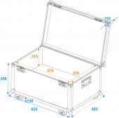 | Maximum load: | 50 kg | | Aluminum profile frames: | 30 mm | | Case handle: | 2 pc/pcs | | Stop hinge: | 2 pc/pcs | | Lock: | Butterfly lock: 2 pc/pcs | | Transport aid: | 4 x castors with 2 locking brakes | | Material: | Plywood multi-layer glued, 9.5 mm, laminated | | Color: | Black, laminated | | Inside dimensions: | 57.5 cm x 37.5 cm x 40 cm | | Dimensions: | Width: 62 cm Depth: 42 cm Height: 58.5 cm | | Weight: | 16.00 kg |     |  |  |  | |