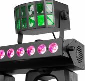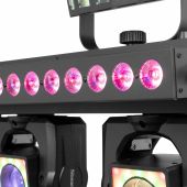 |  | beamZ ShowBar GO Series tilbyder en række alt-i-en belysningssystemer, hver fyldt med kraftfulde LED-effekter, der løfter enhver begivenhed. Alle modeller er udstyret med spektakulære moving heads, og nogle med ekstra dynamiske lyseffekter, der garanterer et blændende lysshow. Disse plug-and-play-systemer er nemme at opsætte og betjene og tilbyder flere kontrolmuligheder, herunder DMX, IR-fjernbetjening, auto-programmer og lydaktivering, alt tilgængeligt via et intuitivt LCD-display med trykknapper. Perfekt til scener, DJs, entertainere, fester og alle former for specialevents, leverer ShowBar GO Series professionel belysningsydelse i en kompakt, bærbar pakke. - 4x 40W Moving Heads 4-i-1 LEDs