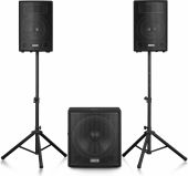 |  | VX1218BT er et kraftfuldt plug & play-højttalersæt, der leverer krystalklar og dynamisk lyd kombineret med dyb bas. Dette kompakte sæt er nemt at sætte op og transportere. Det inkluderer en 18'' subwoofer og to 12'' satellithøjttalere med Piëzo-diskanter. Den indbyggede Bluetooth-modtager gør det muligt at streame musik trådløst fra din smartphone, eller du kan bruge den indbyggede MP3-afspiller med USB- og SD-slot. Dette aktive højttalersæt er velegnet til mobile DJs, karaokeaftener, drive-in shows, præsentationer og lignende. - Aktivt 2.1 højttalersæt