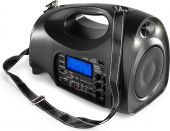 | Product colour | Black | | Playback options | BT streaming, USB, SD, FM radio | | Speaker type | Active (amplified) | | Output power: Max | 130W | | Output power | 65W | | Battery | 12V - 2.2Ah | | Frequency response | 50Hz - 16.000Hz | | THD | <0.1% | | Diameter woofer | 6.5" | | Magnet type | Ferrite | | Input connections | 3.5mm Jack, 6.3mm Jack, SD, USB | | Output connections | 3.5mm Jack, RCA | | Frequency handheld microphone(s) | 863 – 865 MHz | | Frequency headset (bodypack) | 863 – 865 MHz | | Power supply | 100-240VAC 50/60Hz | | Dimensions (L x W x H) | 320 x 180 x 215 mm | | Weight (kg) | 2,40 | | Included accessories | Handheld microphone (wireless), Headset microphone (wireless), Remote control (wireless) | pdf