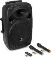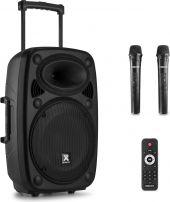 Includes 2 UHF handheld microphones with echo effect