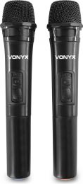 Includes 2 UHF handheld microphones with separate volume control and switchable echo effect