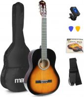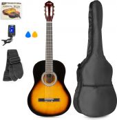 | Tilbudet indeholder følgende: (klik på læs mere for at se produktdetaljer) 1 x Spansk Guitar Pakke 39" - Voksen-fullsize, Akustisk (fra 12 år) Sunburst / Alt du skal bruge! Læs mere 1 x Universal Guitar Stand Læs mere 1 x Guitar fodstativ GP15, robust design / sort Læs mere
