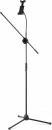 The MS10TH is a tripod microphone stand features three legs that retract and fold up to a neat package, allowing for ultimate portability. A microphone clip, an adjustable boom arm and a tablet holder with 360 Degree swivel gooseneck are included. The robust clamping mechanism holds tablet or other devices securely in place. Rubber caps on the feet of the microphone stand keep the microphone stand firmly in place.