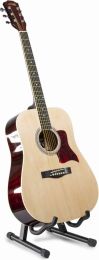 Vare sæt - pakketilbud nr. 10100829 Tilbudet indeholder følgende: 1 x Western Guitar Pakke med taske, digital-tuner, plektre, rem og ekstra strengesæt / Lys træ 1 x Universal Guitar Stand 1 x Guitar fodstativ GP15, robust design / sort