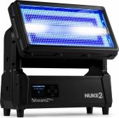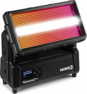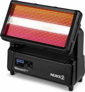 The Nuke2 Motorized Strobe/Wash is a dynamic lighting powerhouse designed for versatility and impact. With a motorised 180° tilt range, this hybrid fixture switches seamlessly between a powerful strobe and a colourful wash, or a captivating combination of both effects. Featuring 96x 10W Cool White LEDs and 864x 0.5W RGB SMD LEDs, the Nuke2 provides a brilliant palette of colours and intense white light. Pixel-mappable zones, DMX control, and automated programs make creating stunning lighting effects a breeze. Its IP65 waterproof rating ensures reliable outdoor performance, making the Nuke2 an ideal choice for both indoor and outdoor events.