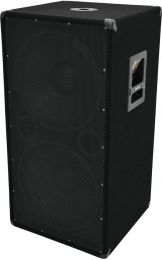 | Power: | Program: 1200W Rated: 600W RMS | | Frequency range: | 15 - 300 Hz | | Sensitivity: | 101 dB (1W/1m) | | Impedance: | 8 ohms | | Attachment system: | Ø 35mm | | Control elements: | Frequency selector switch | | Connections: | Input: speaker via 2 x speaker built-in socket (F) | | Speaker: | 2 x woofer 15" Basket material: steel Conematerial: cardboard/paper | | Type of speaker: | Subwoofer | | Type of construction: | Vented | | Carrying handle: | 2 pc/pcs | | Material: | , 16 mm | | Color: | Black | | Dimensions: | Width: 46.5 cm Depth: 45.5 cm Height: 90 cm | | Weight: | 27.90 kg |