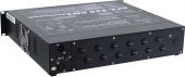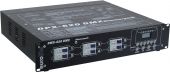 | Power supply: | 230/380 V AC, 50 Hz | | Output power: | Max. 4600 W per channal Max. 27600 W | | Output current: | Max. 120 A | | Power connection: | Mains input via screw terminal | | Power output: | Screw terminal | | Power output fuse per channel: | C 20 A fuse resettable | | Programs: | Preprogrammed 12 scenes/chases | | DMX channels: | 6 | | DMX input: | 3-pin XLR (M) mounting version | | DMX output: | 3-pin XLR (F) mounting version | | Control: | Analog 0-10 V; stand-alone; DMX | | Control channels: | 6 | | Color: | Black | | Housing design: | (19") 48.3 cm rack installation 2 U | | Dimensions: | Width: 48.3 cm Depth: 42 cm Height: 8.9 cm | | Weight: | 7.70 kg | | Noise classification: | Class 1 (very slight noise, suitable for noise-sensitive environments) |     |