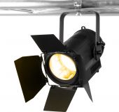 BeamZ BTF100Z Fresnel Zoom bruger en kraftig enkelt kilde LED-motor til at levere et jævnt og ensartet felt af varmt hvidt lys, som er en moderne erstatning for traditionelle fresnel-lyskastere. BTF100Z er udstyret med høj kvalitets optik, en motoriseret zoom-funktion på 25-65 grader og kan både dæmpes og bruges som stroboskop med op til 20 blink per sekund. Ideel til brug i teatre, studier eller enhver scene, der kræver en jævn varm hvid lysudgang fra en energibesparende enhed med ekstremt lang levetid. Funktioner inkluderer Powerconnector in&out og DMX-styring. Leveres med barndøre til formning af lysstrålen og reduktion af blænding, sikkerhedssnor og farveramme.