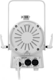 | Power supply: | 100-240 V AC, 50/60 Hz | | Power consumption: | 40 W | | IP classification: | IP20 | | Power connection: | Fixed power supply cord with safety plug | | LED type: | 1 x 57 W COB (chip-on-board) warm white (WW) | | DMX channels: | 1; 2 | | DMX input: | 1 x 3-pin XLR (M) mounting version | | DMX output: | 1 x 3-pin XLR (F) mounting version | | Cooling: | Passive convection cooling | | Control: | RDM; stand-alone; DMX | | Preprogrammed in: | LED PC-Control 512; Light Captain; Light´J; Colorchief | | Projection: | Flicker-free | | Beam angle: | 11° - 48° | | Beam angle (1/2 peak): | 11 - 37° | | Beam angle (1/10 peak): | 17 - 48° | | Color temperature: | 3100K | | Color rendering index (CRI): | 91 Ra | | Illuminance in Lux (lx): | Warm white (WW) 3m: 1656 lx, 6m: 424 lx | | Housing color: | White | | Attachment system: | Mounting bracket | | Display type: | LCD display | | Transport aid: | Rubber feet | | Dimensions: | Length: 27.5 cm Width: 20.5 cm Depth: 25 cm | | Weight: | 3.84 kg | | Noise classification: | Class 0 (no noise at all) | | Legal specifications | | | Special product: | Not designed for household room illumination | | Intended use: | Show effect lighting |     |  |  |  | |