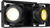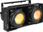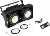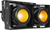 The IP65 rated SB220IP Stage Blinder is a powerful LED lighting fixture with a rugged aluminium design featuring Chip-on-Board (COB) LEDs that combines two effects in its housing. In addition to a standard stage blinder, this fixture can also be used as an authentic blinder effect. (Tungsten mode) The SB220IP matches the blinding light output of a conventional Audience Blinder and can be controlled in standalone mode or directly via DMX. The LEDs feature up to a 60.000 hour life expectancy.
