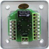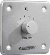 Mountable PA program controller with 24 V emergency priority relay Einbau-Programmwähler mit 24-V-Pflichtempfangsrelais - Switches one of 6 signal sources to one speaker output