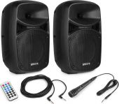 1 x Højttalersæt Plug'n'Play / 2 stk. 8" bas / 400 Watt / Mikrofon og Kabler, Klar til brug! Læs mere