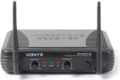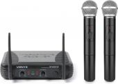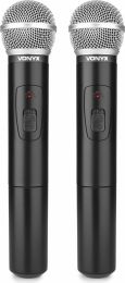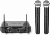 |  | Et dobbeltkanals VHF Trådløst Mikrofonsystem med to håndholdte mikrofoner. Begge sendere fungerer på forskellige frekvenser. God lydkvalitet og pålidelig på grund af VHF-teknikken. Ideel til brug på scenen, af sangere, til præsentationer osv. - VHF Dual-kanals system