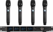 This set comes with a UHF 4 channels receiver, four handheld microphones with rechargeable Li-ion battery, two removable BNC antennas, two extender cables for front-mounting the antennas, a power adapter and an Aluminium case. Four USB cables for charging the wireless microphones are also included. - Professional UHF wireless microphone system