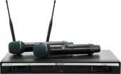 | Type: | Wireless set | | Weight: | 2.97 kg | | RELACART UR-260D 2-channel UHF Receiver 823-832 + 863-865 MHz | | | Type: | Receiver | | Power supply: | 100-240 V AC, 50/60 Hz 12V DC 1000 mA | | Power consumption: | Max. 9 W | | Power connection: | Mains input via coaxial power connector (M) mounting version power supply cord with AC adapter (provided) | | Number of channels: | 2 | | Frequency range: | 45 - 18000 Hz | | S/N ratio: | >100 dB | | THD: | <0.5 % at 1 kHz | | Network connection: | Protocol: Ethernet TCP/IP via 1x RJ-45 (F) mounting version | | DSP: | Digital signal processor 96kHz, 24 bit | | Range: | Range up to 80m | | Frequency band: | UHF 863 - 865 MHz; UHF 823 - 832 MHz | | Diversity: | Antenna diversity | | Switching bandwidth: | 11 MHz | | Frequency stability: | ± 0.0005 % | | Parallel mode: | Max. 9 transmitter | | Modulation: | FM | | Frequency selection: | 90 switchable frequencies In 10 groups with up to 10 preset frequencies each | | Display type: | Multicolor LCD display | | Control elements: | Power switch, groundlift selector, menu, navigation keys | | Connections: | Antenna via 2 x BNC (F) 8 V Output: microphone via 2 x 3-pin XLR (M) mounting version Output: line via 1 x 6.3 mm plug (unbal.) | | Material: | Metal | | Color: | Black | | PC connect: | RELACART Magic EQ software via RJ-45 (F) mounting version | | Housing design: | Desktop console housing (19") 48.3 cm rack installation possible 1 U | | Dimensions: | Width: 41 cm Depth: 26 cm Height: 4.3 cm | | Weight: | 2.40 kg | | RELACART UH-222D Microphone 823-832 + 863-865 MHz | | | Type: | Hand-held transmitter | | Power supply: | 3V DC | | Capsule type: | Dynamic | | Polar pattern: | Super cardoid | | Battery: | 2 x Mignon (AA) (not included) | | Frequency range: | 120 - 16000 Hz | | Sensitivity: | -53 dB | | Max. SPL: | 145 dB | | RF power output: | 5 mW (LO); 10 mW (HI) | | Display type: | OLED display | | Display: | Charge status indicator , frequency , channel | | Control elements: | Gain-switch (high-mid-low), transmitter power switch (high-low) | | Switch: | On/off/mute switch | | Material: | Aluminum | | Dimensions: | Length: 26 cm Diameter: Ø 5.4 cm | | Weight: | 0.28 kg |     |  |  |  | | |