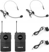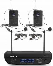 |  | 2-kanals faste frekvens UHF trådløse mikrofonsystemer, herunder to bodypacks, headset og slips-klip mikrofoner. Ideel til systemer, der kræver frihed til to uafhængige trådløse mikrofoner til en økonomisk pris. En rækkevidde på 50m eller derover kan opnås under ideelle forhold. Ideel til dem, der har brug for at bevæge sig rundt, og dem der ønsker at slippe af med kundeemner. - Kompakt UHF-modtager og 2 bodypacks