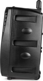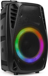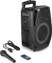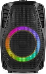 Sæt gang i festen med dette bærbare FT8LED-MK2-lydsystem. Med dette underholdningssystem kan du afspille alle dine yndlingssange og synge af hele hjertet med på dine favoritnumre med den medfølgende mikrofon, uanset hvor du er. Højttaleren er udstyret med et trolleysystem og har en 8” woofer, der giver optimal lyd. Brug Bluetooth forbindelsen til at forbindeden med din smartphone, brug et MicroSD-kort/USB-pind eller tilslut et 3,5 mm lydkabel til din enhed, når en trådløs forbindelse ikke er tilgængelig. Den indbyggede farveskiftende LED-ring monteret bag grillen tilføjer en fantastisk effekt til enhver fest. Dette bærbare højttalersystem har et indbygget batteri og er let at bruge.
