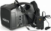 |  | Vonyx ST012 er et smart og enkelt bærbart PA-system med et trådløs headset med indbygget mikrofon (bøjlemikrofon), der blandt andet er optimalt til brug af tour-guides og lignende. Systemet er nemlig med indbygget batteri og kan derfor bruges overalt. Men ST012 er mere end bare et bærbart PA-system. Det indbyggede Bluetooth-modul gør det muligt at holde systemet helt trådløst. For med Bluetooth kan der oprettes trådløs forbindelse til telefonen, tablet eller laptop. Musik afspillet på den forbundne enhed vil herefter blive afspillet på den bærbare højttaler. Sammen med det medfølgende trådløse headset samt knaphuls-mikrofon (enten eller) og det indbyggede batteri gør alt dette ST012 til et fuldt udbygget trådløst system. - USB-indgang til afspilning af MP3-filer