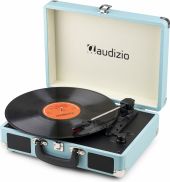 Enjoy the authentic sound of vinyl using this Audizio RP116 record player. This stylish briefcase, covered in a PU leather finish, is lightweight and allows listening to music without having to connect it to a speaker system. Connects wirelessly to speakers, headphones and other devices equipped with BT wireless technology or to wired audio systems and powered speakers. With the built-in BT receiver, digital music can also be streamed wirelessly from a smartphone, tablet PC or other BT compatible device and can be listened to via the stereo speakers.