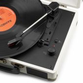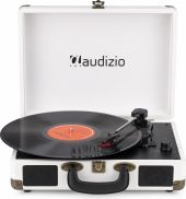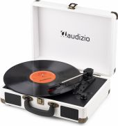 Enjoy the authentic sound of vinyl using this Audizio RP116 record player. This stylish briefcase, covered in a PU leather finish, is lightweight and allows listening to music without having to connect it to a speaker system. Connects wirelessly to speakers, headphones and other devices equipped with BT wireless technology or to wired audio systems and powered speakers. With the built-in BT receiver, digital music can also be streamed wirelessly from a smartphone, tablet PC or other BT compatible device and can be listened to via the stereo speakers.