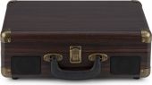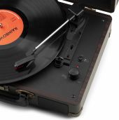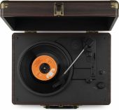 Enjoy the authentic sound of vinyl using this Audizio RP116 record player. This stylish briefcase, covered in a PU leather finish, is lightweight and allows listening to music without having to connect it to a speaker system. Connects wirelessly to speakers, headphones and other devices equipped with BT wireless technology or to wired audio systems and powered speakers. With the built-in BT receiver, digital music can also be streamed wirelessly from a smartphone, tablet PC or other BT compatible device and can be listened to via the stereo speakers.