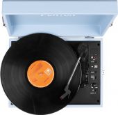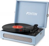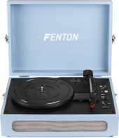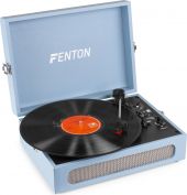 |  | Enjoy the authentic sound of vinyl and play all of the best records using this Fenton RP118 turntable. The three speed turntable can play 33, 45 and 78 rpm records and has a modern PU leather finish with a conveniently lightweight design which makes it easily portable so you can take it with you wherever you go. Connects wirelessly to speakers, headphones and other devices equipped with BT wireless technology or to wired audio systems and powered speakers. With the built-in BT receiver, digital music can also be streamed wirelessly from a smartphone, tablet PC or other BT compatible device and can be listened to via the stereo speakers. - High-quality turntable in suitcase design