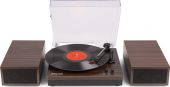 | Product colour | Dark brown | | Playback options | BT streaming, Vinyl | | Output connections | RCA | | Speed settings (RPM) | 33, 45, 78 | | Output power | 100W | | Power supply | 100-240VAC 50/60Hz (12V Adapter) | | Dimensions (L x W x H) | 361 x 262 x 465 mm | | Weight (kg) | 5,40 | pdf