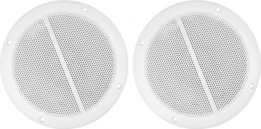 |  | Sæt med 2 vandafvisende højttalere til montering på panel eller loft. Denne vandtætte design kan modstå regn, sprøjt og afvaskning (men ikke nedsænkning). De er også UV-resistente, så de ikke vil bryde ned under langvarig udsættelse for solen. Ideelle til brug på både eller i PA-installationer såsom swimmingpool-områder, badeværelser osv. - Fuld plastikindkapslingsramme og integreret gitter