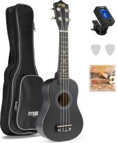 The UKEY Ukulele is a popular soprano ukulele kit, ideal for beginners. The ukulele originally designed in Hawaii has been incredibly loved in the last 80 years for its amazing sound, its practical size and extremely easy learning process. This well-constructed instrument has a body and top made of basswood that produces a bright sound with excellent sustain. (capacity of a musical instrument to continue the resounding of a note or tone) The kit comes with a handy digital tuner, two picks, extra strings and a durable handy bag. The nylon strings and eco-friendly design make it your favourite musical instrument. Have fun and learn music at the same time. - Comfortably shaped Basswood neck