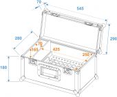 | Maximum load: | 25 kg | | Aluminum profile frames: | 22 mm | | Case handle: | 2 pc/pcs | | Stop hinge: | 3 pc/pcs | | Lock: | Butterfly lock: 2 pc/pcs | | Material: | Plywood multi-layer glued, 6 mm | | Color: | Black, laminated | | Compartment dimensions: | 42.5 cm x 25 cm x 20 cm 7 cm x 25 cm x 20 cm | | Inside dimensions: | 50.5 cm x 25 cm x 21 cm | | Dimensions: | Width: 54 cm Depth: 29.5 cm Height: 24.5 cm | | Weight: | 8.00 kg |     |  |  |