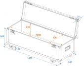 | Maximum load: | 50 kg | | Aluminum profile frames: | 30 mm | | Case handle: | 2 pc/pcs | | Stop hinge: | 3 pc/pcs | | Lock: | Butterfly lock: 2 pc/pcs | | Transport aid: | 4 x castors with 2 locking brakes 4 x built-in stacking trays in the cover | | Use of brands: | Branded hardware | | Material: | Birch multiplex, 7 mm | | Color: | Dark brown, laminated | | Inside dimensions: | 139.5 cm x 30 cm x 24.5 cm | | Dimensions: | Width: 144 cm Depth: 34 cm Height: 48 cm | | Weight: | 17.70 kg |