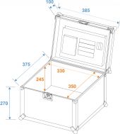 | Maximum load: | 10 kg | | Aluminum profile frames: | 30 mm | | Case handle: | 1 pc/pcs | | Lock: | Butterfly lock: 1 pc/pcs with shut-off function | | Material: | Plywood multi-layer glued, 7 mm | | Color: | Black, laminated | | Inside dimensions: | 33 cm x 35 cm x 24.5 cm | | Dimensions: | Width: 38 cm Depth: 38 cm Height: 36 cm | | Weight: | 4.70 kg |  |  |  |