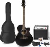 Tilbudet indeholder følgende: (klik på læs mere for at se produktdetaljer) 1 x Western Guitar, halvakustisk "Komplet Guitarpakke" 40W guitar-forstærker, taske og kabler, Sort Læs mere 1 x Guitar fodstativ GP15, robust design / sort Læs mere